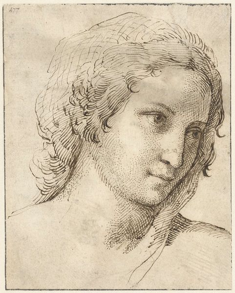 Curator: Welcome. Here we see "Head of a Woman, Looking to the Right," an engraving dating from around 1710 to 1767 by Leonard Schenk, currently held in the collection of the Rijksmuseum. Editor: Whoa. This piece is stark but gorgeous! I can't take my eyes off those curly tendrils cascading across her shoulders and how she looks lost in thought, you know? There's such simple, raw intensity here. Curator: I find the portrait's clean, linear quality to be quite compelling, but this portrait is particularly compelling as a portrait reference—how do you mean, 'raw'? Editor: Okay, maybe not raw in an unfinished sense, but raw in the sense that the engraver wasn't afraid to show lines of texture on the subject’s neck and face! So real. In so many classical female depictions everything is polished and idealized. The way she's not afraid of showing a human face here makes it seem quite vulnerable, and you have to consider the gaze away from the artist. It adds an element of reflection. Curator: It's interesting you describe this as raw because engravings at the time served a really interesting function. Engravings offered a standardized portrait that could be reproduced and shared across wider audiences. It's an act of creating the public persona. So, really the point isn’t capturing 'raw' emotion, so much as manufacturing and distributing 'an image.' Editor: Oh, that's a clever perspective—it is easy to look at this without accounting for production processes and consumption... Even the idea that people were meant to experience the art reproduced has altered my view a lot! Curator: Exactly. Each impression would carry Schenk's style as a sort of branding. This way the print becomes a form of art dealing as well. Editor: Yes, absolutely! Thank you for pulling me back! Looking at this piece under these ideas definitely does add value and nuance! I can definitely get the brand here and it certainly is a fascinating subject as I explore! I appreciate the insight and experience, definitely a valuable time spent.