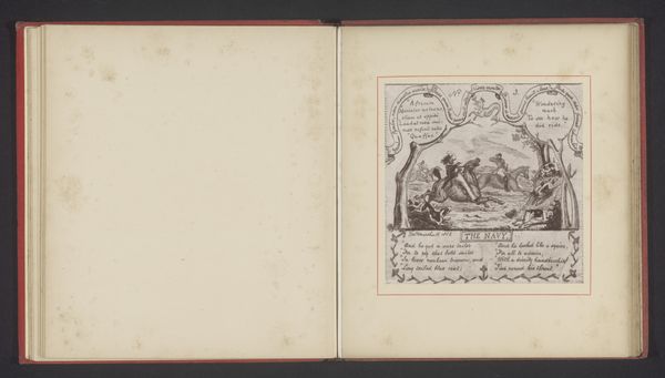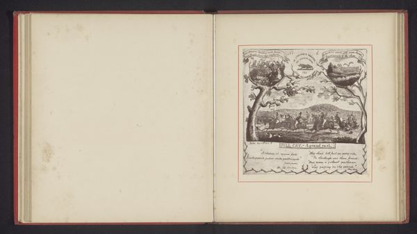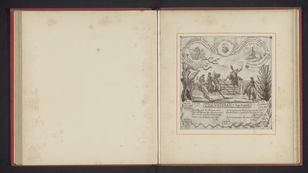 Curator: This drawing by Thomas Mervyn Bouchier Marshall, likely predating 1885, depicts a hunting scene surrounded by memento mori. Editor: What strikes me first is the composition itself – the tight, almost claustrophobic framing around the central scene. It feels weighty, morbid even, with those bordering death symbols. Curator: Indeed, the arrangement contributes greatly. Note how the artist employs line and detail. The skeletal symbols contrasting with the vivacity of the hunt… It's a dance between form and its stark thematic counterpart. We see clear effort in rendering depth and texture in what looks like pen work, perhaps with some light washes. Editor: The act of hunting as rendered here raises some uncomfortable questions for our contemporary sensibilities. Hunting often carried class associations, as something for landowners to display wealth and privilege through access to sport on vast landholdings unavailable to everyone else. The 'triumph' shown in these hunting scenes may mask issues around animal rights, power dynamics and human hubris. Curator: True, but formally we should note how that 'triumph', if we take that as a central motif, is itself framed. It exists inside this greater symbol set relating to the end of existence, and also in terms of composition; observe how figures are arranged across space... a deliberate hierarchy is created. Editor: While observing hierarchy, look to how gender might operate through visual motifs, too. The absence of any female hunters also reinforces the historical exclusion of women from powerful outdoor activities linked to status, agency, and visible expressions of leadership – who gets to represent what in these carefully crafted scenes? Curator: Marshall’s decision to include text fragments in Latin… What are we to derive from it besides establishing further symbolism, if not scholarly pursuit as part of conceptual architecture itself? Editor: Perhaps he challenges a largely unacknowledged and continued domination of academic spaces by upper classes afforded opportunities others are systematically denied to this day – his inclusion serves only select elites by demanding fluency. Curator: One can’t deny such possibility within analysis, although one can remain astounded simply with technique showcased via hatching gradients used liberally to show various planes within densely packed spaces contained inside frames - truly stunning achievement even if subject carries potentially unsettling message through. Editor: Yes. Perhaps the effectiveness of the drawing rests not in aesthetic refinement only, but its invitation towards broader discussions considering ethical responsibilities we all must recognize if lasting structural progress remains objective.
