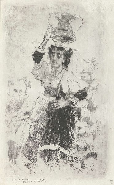 This is an evocative watercolor portrait of Rosa Corder by James Abbott McNeill Whistler, who was known for his mastery of the medium. Watercolor is a fascinating material. Its fluidity allows for spontaneity, but it also demands careful control. Whistler here coaxes out the qualities of water, allowing it to pool and bleed, creating soft, blurred edges. He uses the translucency of the paint to build up layers of tone, achieving a subtle depth. The quick, confident strokes of the brush suggest that this was done in one sitting. The economy of means speaks to Whistler's skill, but also to the social context. Watercolor was often favored for portraiture in the 19th century because it was quicker and cheaper than oil paint, making art accessible to a wider range of patrons. By focusing on the material qualities and social context of this artwork, we gain a richer understanding of its meaning, bridging the gap between fine art and the everyday practices of artistic production.