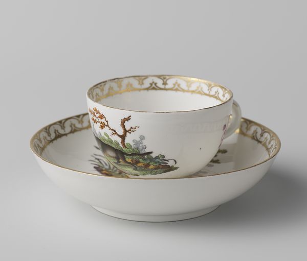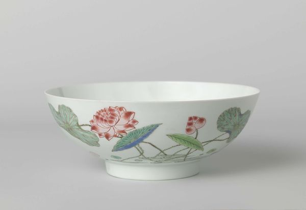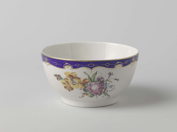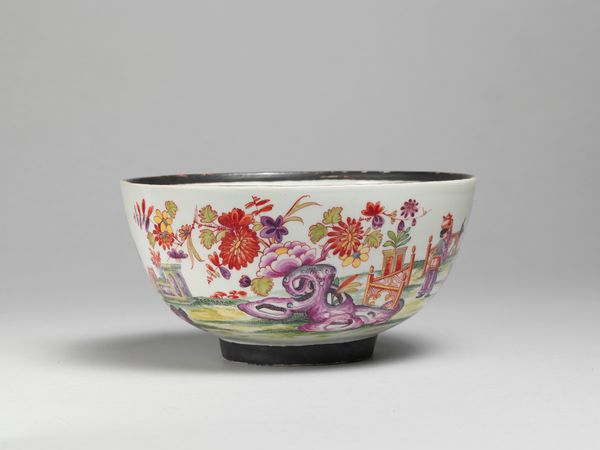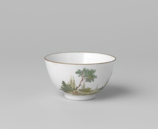 Editor: This is an earthenware bell-shaped bowl, believed to be crafted sometime between 1700 and 1724. Its neutral coloring and detailed plantlife lend it a whimsical air, despite being anonymously created. How do you interpret the choices of the painter, and their approach to subject and material? Curator: What strikes me is the quiet confidence, wouldn't you agree? The artist, unknown to us, boldly chooses a palette that whispers rather than shouts. Think about the earthenware itself—so humble, so earthy. Yet, the artist elevates it with delicate underglaze painting. The rocks and flowers aren't just decorative; they're symbols. The rocks suggest permanence, the flowers speak of ephemeral beauty, a fleeting moment captured. And isn't it remarkable how the light brown hues create depth, almost a three-dimensional landscape on such a small surface? It feels like a tiny world, teeming with symbolism. Editor: I agree! The contrast is a very fascinating part, almost playful, and I didn’t think about what that palette was hinting at initially. So, would it be right to assume that despite the "anonymity," its sophistication could signal the touch of a dedicated or seasoned painter? Curator: Precisely! Anonymous doesn't always mean unskilled. Perhaps it was created in a workshop setting where individual artistry was secondary to the overall product. Or maybe the artist, for reasons unknown, chose to remain in the shadows. It adds a layer of mystery, doesn't it? This piece prompts me to wonder about who they were, their lives, their world and creative process… Makes you wish earthenware could talk, right? Editor: Definitely. Thinking about all that went into producing it makes me appreciate even more just how delicate this artefact is, the journey of knowledge contained in its humble presentation. Curator: Couldn't agree more! Art whispers its secrets, if only we listen closely enough.