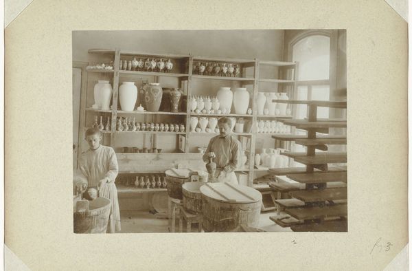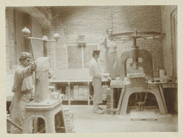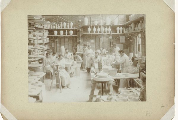 Editor: This photograph, titled "Kantoor van de Deli Courant," is thought to be from between 1908 and 1910. It presents an intriguing glimpse into what I assume is the office of the Deli Courant. It feels like a stage, almost posed. What's your interpretation? Curator: The image offers a peek into the socio-political dynamics of the time. "Deli Courant" was a newspaper published in Medan, North Sumatra, during the Dutch colonial era. The subjects, likely Dutch administrators or employees, are posed as if in their natural environment. How might this carefully constructed image have served the interests of the colonial power structure? Editor: So, this isn't just a simple office snapshot, it's deliberate? It makes you wonder about the photographer's intent, whether it was about showcasing efficiency or reinforcing a certain image of colonial life. Curator: Precisely. The photograph highlights the controlled environment and reinforces a specific narrative. Note how some people in the scene have a Western look to them, while others seem of Asian descent. It speaks volumes about the hierarchy and power dynamics inherent in the colonial system and the politics of imagery at the time. Where do you see it exhibited or collected today? Editor: That's a great question. I imagine it could be exhibited either in a museum with colonial history or a photography museum, framed as a documentation of working culture. Curator: Absolutely. Museums play a vital role in shaping the narrative around these images, sparking a conversation about its complex colonial history. What do you make of how our perception of such historical photography has evolved? Editor: Thinking about the museum context, it highlights the importance of critical viewing and contextualization when dealing with historical photography, helping to better understand both the subject matter and the sociopolitical agenda they represent. I will definitely consider that from now on.