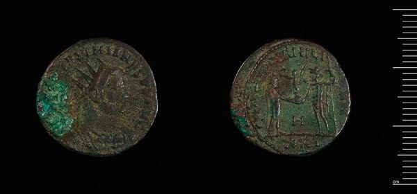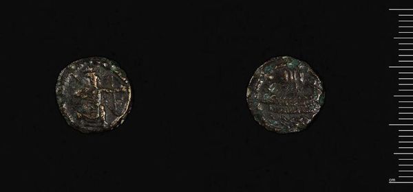 Editor: This is a bronze coin, an AE4 of Constantine I from Siscia. It's amazing how much wear and tear it has endured. I'm curious, what does its materiality tell us about its historical context? Curator: This coin, a small denomination, speaks volumes about production and access. The copper alloy, the labor involved in mining, smelting, and striking – all reflect the Roman Empire's economic and social systems. How might the coin's devaluation have impacted the daily lives of ordinary people? Editor: It’s interesting to consider how even something this small embodies the bigger picture of the Empire’s economy. Curator: Indeed. By examining the material reality of objects like this coin, we gain a more grounded understanding of the past.