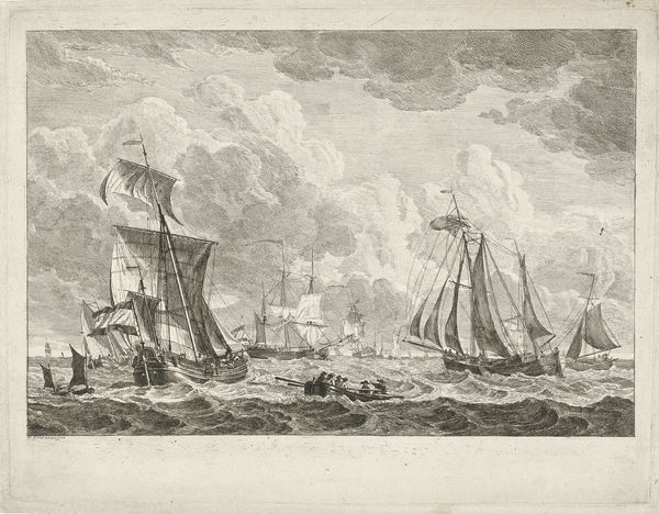 Gerrit Groenewegen etched this depiction of an American ship on restless waters. Observe the ship and the people on the shore. They are not merely figures but symbols laden with historical weight. Consider the ship itself, with the American flag. It’s reminiscent of ancient vessels navigating treacherous seas, a metaphor for human destiny. The turbulent waters evoke the primordial chaos from which life emerges, an enduring symbol across cultures. This motif resonates with the ancient Mesopotamian myths of a great flood or even the Old Testament. The individuals on the shore watching the ship are also relevant: do they want to embark or disembark from it? Perhaps they are merely gazing at a ship sailing away, which may signify a desire for what is absent. The longing for what could be has been a powerful emotional force driving human action and artistic creation throughout history. In such a way, the collective memory of voyages, both real and imagined, continues its non-linear progression, resurfacing and evolving in each telling.