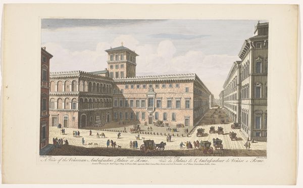 This print of the Santo Spirito in Sassia church in Rome was made by Jean-François Daumont, probably not long before his death in 1775. The technique used was engraving, a printmaking process in which lines are incised into a metal plate, which is then inked and pressed onto paper. What’s interesting about prints like this is their potential for mass production. The engraver's skill lies not only in rendering an image, but in creating a matrix that can be reproduced many times over. This had a democratizing effect, making images accessible to a broader public. We can see this in the very fine lines of the engraving, which create texture and depth, but also allow for efficient replication. The application of color, likely done by hand after printing, adds another layer of labor to the process. So, when we look at this print, we're not just seeing a depiction of a Roman church. We're also seeing the result of a specific mode of production. By understanding its material and making, we gain insight into the social and economic context of its time.