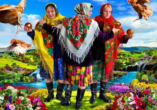 Babak-Matveev made Group Celebration around 2014, using photography and digital manipulation. It’s a riot of color, isn't it? The way the purples and greens pop against the golds and reds, it’s like a visual feast, a party on a screen. Look at the texture of the image. It’s smooth, almost too perfect, which gives it this surreal quality. The colors are bold and saturated, like they've been turned up to eleven. And those figures – they’re like characters out of a folk tale, dressed in these outlandish costumes, each one a walking, talking color block. Take the man with the accordion, for example. His purple jacket clashes so wonderfully with his bright green trousers, a detail which pulls you right into the scene. This is kind of like the work of David Hockney - both artists share a love for bright, clashing colors and a playful approach to perspective. It’s a reminder that art is an ongoing conversation, a dialogue across time and styles.
