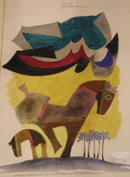 Editor: Here we have Lèon Spilliaert's "Femme au Lévrier," created in 1917. It’s a watercolor piece. The starkness of the woman and dog against the washed-out background creates a sense of isolation. What strikes you most about this work? Curator: I'm intrigued by the psychological tension Spilliaert creates. Consider the historical context: 1917, during the first World War. The stark simplicity, the almost spectral figures... to me, this speaks to a collective sense of loss and anxiety that pervaded society at the time. Editor: I see that. It’s like they’re ghosts in their own world. But the woman seems so detached. Curator: Precisely. Consider the role of women during wartime, often left to maintain the home front while facing immense personal grief and uncertainty. Is she a symbol for grief and isolation? Also, notice how the dog seems both protective and vulnerable, an analogy to those left behind, trying to safeguard a fragile existence? The greyhound, a breed historically associated with nobility, almost hints at societal decay as war strips away established hierarchies. Editor: That makes me look at it differently. It’s not just a woman and a dog; it's a representation of an entire era and the feelings within it. Curator: Exactly. The personal becomes political, even in what seems like a quiet, intimate scene. This watercolor is a profound statement. Do you notice the almost careless washes of the watercolour which also create depth? Editor: Now that you mention the socio-historical elements I see them. Thank you for your insights! Curator: My pleasure. Hopefully we can view more work by Spilliaert!