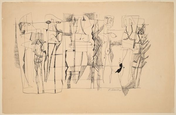 Dorothy Dehner made this print, 'Ancestors', sometime in the 1950s, and it's all about the power of line. The texture in this piece comes from the density of marks. Look closely at the way the faces are built up from simple shapes. See how the lines seem to scratch and bite at the paper? There's something really raw about that, an urgency to get these figures down, as if they might disappear if she doesn't work fast enough. The overall tonal effect of the piece is like a memory, something half-formed, barely visible, but undeniably present. In a way, Dehner's work reminds me of some of the early Picasso prints. There’s the same sense of trying to conjure totemic forms out of thin air, a shared interest in the primal power of simple marks. Of course, art isn't about answers, it's about questions, and this print asks some pretty big ones about where we come from and who we are.