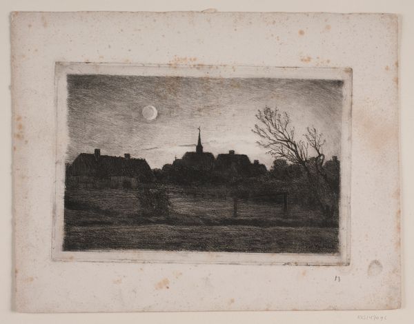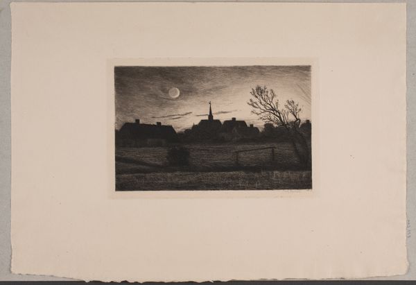 Carl Locher made this etching, Hornbæk Church, on a summer evening, capturing a scene dominated by the moon, the church, and a stark, bare tree. The full moon, an age-old symbol of cyclical change, fertility, and the feminine, casts an ethereal light, evoking a dreamlike quality. Consider how the church spire reaches toward the heavens, a symbol of faith and aspiration. Its form echoes through centuries, from ancient obelisks to modern skyscrapers, each structure carrying the weight of human longing for something beyond our earthly existence. The bare tree, reaching skyward, recalls similar imagery in folklore, where trees are symbols of life and regeneration. Think of the tree in Edvard Munch’s paintings, expressing the artist’s tortured psyche. Such imagery evokes a deep sense of melancholy. The tree's branches mirror our subconscious, revealing a longing for what is lost, a yearning for cyclical renewal. This is how, time and time again, the emotional power of symbols resurfaces across epochs.