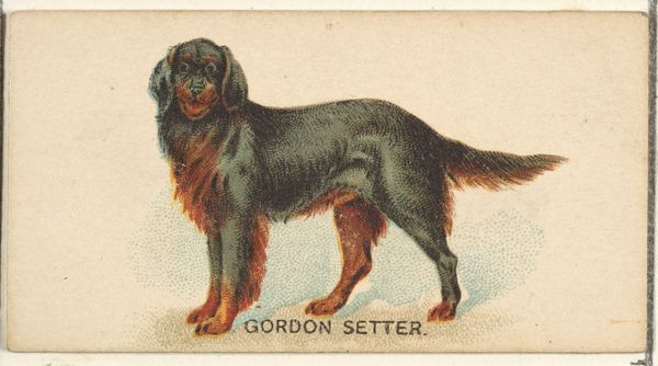 Editor: Here we have a 'Black and Tan Terrier' from the 'Dogs of the World' series, printed around 1890 by Goodwin & Company. It's a colored-pencil drawing, quite small, really. What strikes me is its almost clinical precision; it’s less about capturing personality and more about...identification. What do you see here? Curator: The image, divorced from the actual animal, elevates the dog into a symbol. What do these 'Dogs of the World' represent in this historical context? Beyond breed identification, there's a strong cultural current: late 19th-century obsession with categorization, and defining hierarchies. Editor: So the act of cataloging elevates the dog breed itself to a...cultural signifier? Like a family crest, perhaps? Curator: Precisely. It's more than just a dog, isn't it? The starkness and deliberate precision you noted speaks to a desire to control and codify nature itself. Even the colors; a stark black and tan, reinforce this concept of order and clarity, a symbolic separation from chaos. Editor: I didn’t even consider that aspect of it – the way it tries to put the natural world into boxes, so to speak. I was stuck on thinking about this piece as a portrait. Curator: These images are almost like talismans, visual shorthand for complex societal values that the buyer might want to ascribe to themselves. How might the intended owner use or misuse this symbolism? That’s what truly animates the artwork, even now. Editor: I see. So it's about status, belonging...even a type of visual branding of one’s self, reflected through this carefully constructed image of a dog? Food for thought, indeed!
