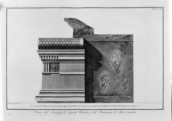 Giovanni Battista Piranesi rendered this etching, a profile section of a monument, in the 18th century. Dominating the composition are the bovine skulls, potent symbols deeply embedded in the cultural memory of Europe. These bucrania—ornamental skulls of oxen—evoke sacrificial rituals from antiquity. We see similar motifs adorning ancient Roman temples and altars. The bull, historically associated with fertility and power, undergoes a transformation here. Stripped of life, its skull becomes a memento mori, a stark reminder of mortality. Consider how this image intertwines the celebration of life with the acknowledgment of death, reflecting the cyclical nature of existence. Even in the Renaissance, artists integrated similar imagery, drawing upon these ancient symbols to communicate complex ideas about fate and the ephemeral nature of earthly existence. The emotional weight carried by these symbols is immense, engaging viewers on a subconscious level, stirring primal fears and philosophical reflections. They resurface, evolve, and take on new meanings, continuing their journey through time.