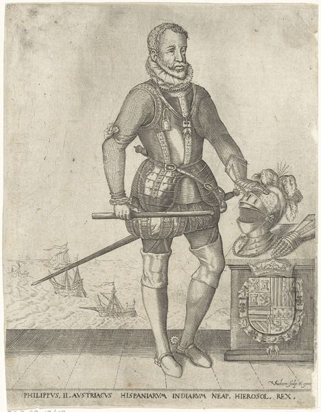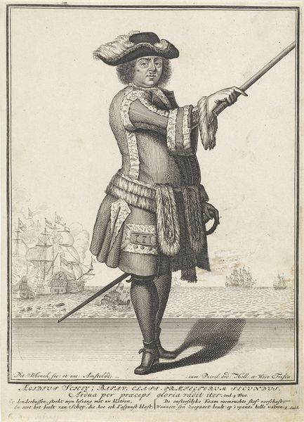 This small engraving shows Willem Lodewijk, Count of Nassau-Dillenburg, and was made by Pieter Feddes van Harlingen in the Netherlands. The portrait represents Lodewijk in full military regalia; an image which served to solidify his authority and status during a turbulent period in Dutch history. The print would have circulated widely, functioning as a form of political communication. Note the Latin inscription, a visual cue that would have reinforced Lodewijk's image as an educated and enlightened leader. The choice of Latin speaks to the cultural conventions of the time, in which the classical world was a touchstone for the powerful. To fully understand this image, we need to look at Dutch social structures of the 17th century. By examining prints like this, alongside other historical sources, we can gain insight into the ways in which power was negotiated and expressed through visual culture.