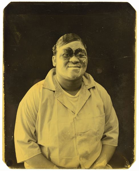 Editor: This gelatin-silver print, “Franklin Jones, Angola, Louisiana” by Deborah Luster, was taken in 1999. The somber tone and the man's gaze looking off to the side evoke a feeling of contemplation. What does this portrait reveal about its subject, in your opinion? Curator: This image, beyond a simple portrait, stages a powerful narrative. Luster's choice to photograph Franklin Jones in Angola—the Louisiana State Penitentiary—immediately situates the work within a historical and social context of incarceration and its impact, especially on African American communities. The gelatin-silver print technique evokes a historical aesthetic, reminiscent of earlier mugshots or anthropological documentation. Editor: That's fascinating! The reference to older mugshots changes everything about how I view the piece. Does his prison uniform further contribute to the photograph’s impact? Curator: Absolutely. The prison uniform, devoid of individuality, speaks volumes about institutional power and the erasure of identity. The “subject” of portraiture has historically been connected with nobility, royalty, and wealth. The very conscious artistic choice by Luster speaks of how we socially perform power relations between museums and the individuals. The photograph makes one question the ethical considerations surrounding such visual representations. Editor: So, the artwork goes beyond just portraying an individual. It serves as a critical commentary on a flawed system. Curator: Precisely. Luster invites us to reflect on how photographic representation participates in the social construction of criminality and how institutions influence our perception and judgment. It humanizes an individual within an inhumane system, forcing us to confront uncomfortable truths about justice and power. Editor: I hadn’t considered the deeper socio-political implications before. Now, seeing it in that light, the photograph seems so much more charged and unsettling. Curator: It’s in that unsettling space, where discomfort sparks inquiry, that art fosters dialogue and compels societal change. That, ultimately, becomes the social and historical impact and continued significance of Luster's poignant work.