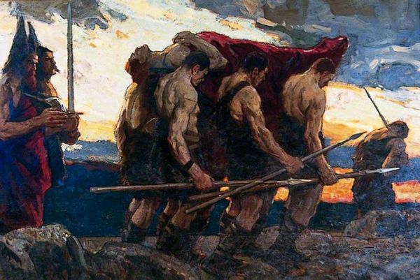 Tahir Salahov made this painting, "From the Watch," with visible brushstrokes that feel so urgent, so expressive. You get the sense that the painting itself is a record of his thinking, his seeing, his feeling. I’m really drawn to the way Salahov handles the figures' clothing – that rough, almost brutal application of paint, capturing the weight and texture. Look at how he builds up the surface, layering strokes of beige, grey, and umber to create a sense of volume and movement. It’s like he’s sculpting with paint, pushing and pulling the medium to create these really solid forms. Then, right next to that, he’ll leave these loose, gestural strokes that dissolve into the background. The way he captures light reflecting off the water is amazing. It reminds me a little of Courbet, that same commitment to realism, that sense of capturing the here and now. And, like Courbet, Salahov isn’t afraid to embrace the ambiguity of painting. He leaves us with questions, rather than answers, and that’s what makes it so compelling.