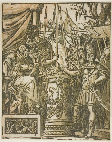 Anton Woensam created this woodcut print, Saints Philip and Bartholomew by a Spring, sometime in the early 16th century. The detailed print situates the viewer within the religious fervor and evolving social dynamics of Renaissance Germany. Woensam captures Saints Philip and Bartholomew alongside a spring, not just as religious figures, but as active participants in a social landscape. Notice how the spring, a source of life, is adorned with what appears to be a Star of David. In an era marked by both religious devotion and social tension, Woensam's choice to include this detail is striking. What could this inclusion mean? Perhaps it's a commentary on the complex intersections of religious identities in the Rhineland at the time. The artist positions the saints within a very specific cultural context, inviting us to reflect on our own identities, histories, and relationships to faith. In doing so, he suggests how art can reflect society's ever-changing dynamics, laden with personal and communal stories.