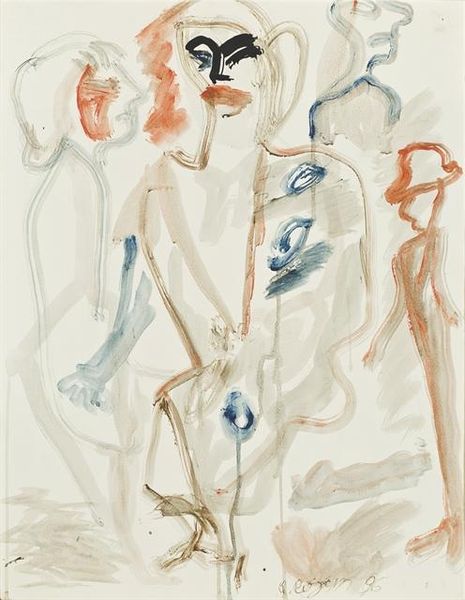 Curator: What a striking image. We're looking at "Solitude," a piece by Comte Régis Guy de Bouvier de Cachard. Editor: Yes, the figure seems almost architectural, all lines and angles. It evokes a sense of melancholy, doesn't it? Curator: Absolutely. I'm drawn to how the artist uses simple materials to create such a complex form. The printmaking process, the layered inks… it all speaks to a deliberate construction. Editor: Notice how the blues and grays interact. The cool tones and the figure's posture contribute to this feeling of isolation and reflection. Curator: It's interesting to consider this work within the context of Cachard's life and his relationship to aristocratic traditions and the labor involved in art production. Editor: Indeed, a poignant visual statement. Curator: Definitely something to contemplate.