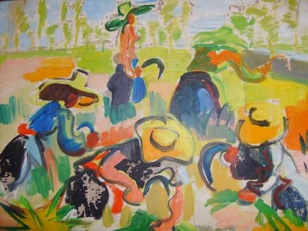 Radi Nedelchev’s painting ‘Jungle’ presents a vibrant, stylized scene of life within a tropical forest. The composition is dense, with figures and fauna interwoven amidst the vertical thrust of trees, creating a dynamic interplay between light and shadow. The painting's structure evokes a sense of contained chaos. Nedelchev uses dark, silhouetted figures to punctuate the canvas, contrasting them against the lighter, variegated background. This juxtaposition highlights a duality between presence and absence, a theme often explored in poststructuralist thought where meaning is found in the gaps and contrasts within a system. The use of bold, simplified forms flattens the pictorial space, challenging traditional notions of depth and perspective, and pushing toward a more symbolic representation. The composition resists a singular, stable interpretation, mirroring the ever-shifting dynamics of the jungle itself. It's through this formal arrangement that the painting transcends a mere depiction and becomes an arena for examining cultural and philosophical perspectives on nature and representation.