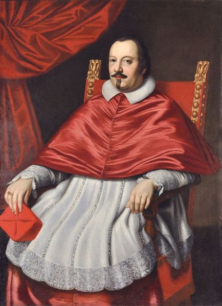 Curator: This compelling oil painting is entitled "Portrait of Cardinal Jacopo Rospigliosi," attributed to Giovanni Battista Gaulli, a prominent figure in the Baroque movement. It presents an intimate portrayal, wouldn’t you agree? Editor: It is striking! My initial impression is one of restrained power. The cardinal’s gaze is direct, but there’s a hint of melancholy there too, wouldn't you say? The somber colors add to this contemplative atmosphere. Curator: Indeed. The artwork exists within a world where portraits reinforced hierarchy, and served as vital tools for political power and legacy-making. The Baroque style emphasized drama and emotion, clearly designed to resonate with its intended viewers. How do you see those themes expressed here? Editor: The scarlet robes of the Cardinal, their hue both a symbol of high status and a suggestion of hidden passion. That contrast between the outer display of ecclesiastical dignity, represented by his office and attire, and that inward contemplation – that tension fascinates me. Curator: Considering the Baroque fondness for theatrics, and also Cardinal Rospigliosi was part of the papal court, do you find anything intriguing within the portrait? Editor: The light and shadow falling across his face. Look at how the right side of his face catches the light. The rendering of this technique creates a complexity of character that seems unusual for a formal depiction of its era. I wonder, does it portray his interior conflict? Curator: Gaulli has certainly left much open to interpretation. Cardinal Rospigliosi was at the heart of power. Considering that his uncle became Pope Clement IX, portraits like these reinforced that message. It is an interplay between personality and public position. Editor: For me, those visual tensions create a truly magnetic painting. Gaulli has not only immortalized a Cardinal, he has managed to convey something timeless about ambition, perhaps, or inner peace in public authority. Curator: Absolutely. We witness the Cardinal’s official position against the backdrop of human complexities, mirroring the political and personal interplay in his lifetime. Thank you, these symbolic and aesthetic elements you discussed have deepened my appreciation for the work and what it expresses. Editor: Thank you, and I agree! To view this painting now allows us a vivid portal to its socio-political world and psychological intensity.
