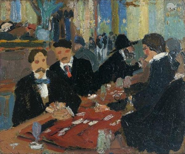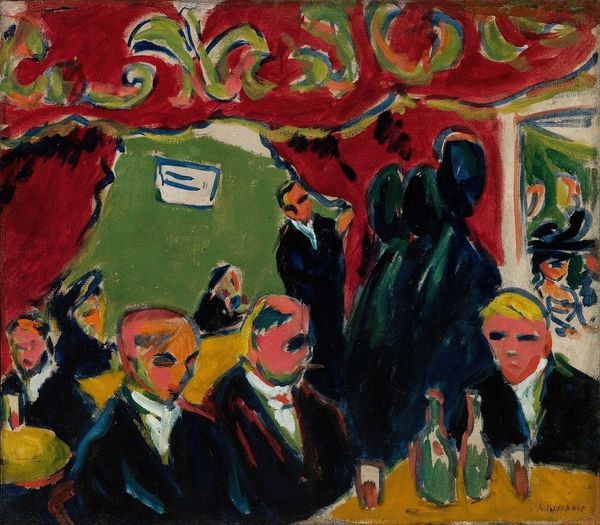 Henri de Toulouse-Lautrec painted "At the Moulin Rouge" using oil on canvas, capturing a night at the famous Parisian cabaret. The composition is striking; the use of perspective pulls us into the scene, placing us among the patrons. Lautrec's bold brushstrokes and use of color create a sense of movement and energy. The figures are not idealized, rather they are captured with a raw, unflinching honesty. Take note of the woman with the green-tinted face in the foreground, her mask-like visage unsettling and intriguing. Lautrec was influenced by Japanese prints, which you can see in the flattened perspective, and the cropped figures. This challenges traditional notions of representation. He was an observer of Parisian nightlife, and his art offers a glimpse into a world of entertainment, artifice, and social commentary. Consider how Lautrec uses color and form not just to depict a scene, but also to destabilize established meanings and invite us to question the nature of perception and representation.