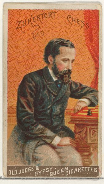 Curator: This small printed card features Oswald Ottendorfer of the New Yorker Staats-Zeitung, and it comes from a series of American Editors made for Allen & Ginter Cigarettes around 1887. The piece is held in the collection of the Metropolitan Museum of Art. Editor: It has this peculiar blend of formality and ephemeralness. The sitter has the stern, self-important demeanor we expect from a 19th-century portrait. And yet, it's tiny! It feels more like a token, meant for brief admiration and then… perhaps discarded. Curator: That's where the context comes in, and where the politics of image creation gets very interesting. These cigarette cards were hugely popular, essentially functioning as advertising. Allen & Ginter weren't just selling tobacco; they were selling aspirations and affiliations through figures like Ottendorfer. Editor: So Ottendorfer, as editor of a German-language newspaper, becomes a collectible commodity himself? It highlights the paper's materiality, in that sense. To see the newspaper publisher packaged along tobacco underlines consumption as a crucial layer within news distribution itself. The drawing is lithographed, reproduced *en masse.* Curator: Precisely! Ottendorfer was a major figure in the German-American community and an important voice in New York politics. By including him, Allen & Ginter acknowledged this demographic and sought their business. It demonstrates the evolving public role of ethnic presses at this moment. The piece has an accessible size meant to increase readership as the publishers are recognized in the hand. Editor: It’s unsettling, thinking about how deeply intertwined journalism and industry were then… and arguably still are. The print reminds me of how our leaders themselves may only live as memories on archived paper one day. Curator: Definitely food for thought as we move further through the exhibit. Thanks for your material analysis of how these figures move and are produced into collectibles to affect the sociopolitical lens. Editor: Yes, that little piece certainly opened some pathways of insight. I suppose, one truly has to analyze art pieces in their intended medium, to catch the underlying context within which they operate.