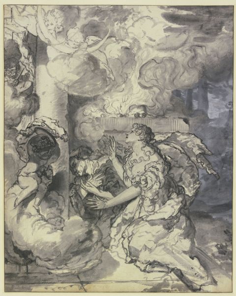 Peter Paul Rubens created "The Sacrifice of Isaac" using pen and brown ink, with brown wash on paper. The composition centers on a dramatic, swirling vortex of figures and forms. The stark contrast between light and shadow amplifies the emotional intensity of the scene. Rubens masterfully employs diagonal lines and dynamic movement. These visual elements destabilize any sense of calm, drawing us into the heart of the biblical drama. The angel’s intervention from above disrupts the scene. It challenges the imminent, tragic outcome and introduces a moment of divine interruption. Note how Rubens uses texture through varied applications of ink. This adds depth and a tactile quality to the scene. It's a potent reminder that art is not just representational. Instead, it is a dynamic interplay of form and content, where the means of creation profoundly shape our understanding.