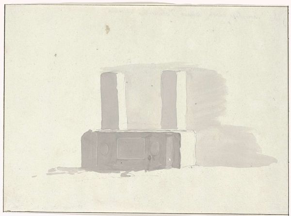John Sell Cotman’s “Font at Caister Church, Norfolk” is a pencil and wash drawing that captures a baptismal font with remarkable geometric precision. The composition, dominated by cubic and cylindrical forms, immediately evokes a sense of classical order. Cotman’s careful articulation of lines and tonal variations constructs a weighty, almost monumental structure. The font, rendered with meticulous attention to its architectural components, sits firmly on a stepped base. Vertical lines delineate its various sections, creating a rhythmic pattern that is both visually satisfying and structurally informative. The use of light and shadow further accentuates the three-dimensional quality of the object, lending it a tactile presence on the page. Cotman’s formalism invites us to consider the interplay between representation and abstraction. Through its careful structure and deliberate composition, the artwork challenges fixed meanings, suggesting a deeper engagement with architectural form and its cultural significance. Ultimately, the drawing prompts a re-evaluation of the semiotic weight embedded within such religious artifacts.