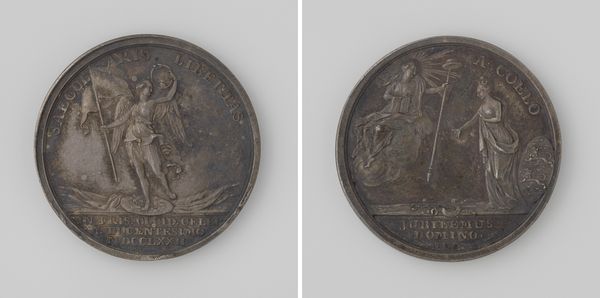 Ottone Hamerani created this metal coin depicting Princess Maria Clementina Sobieska sometime between 1694 and 1768. The coin immortalizes Maria Clementina Sobieska, a Polish princess whose arranged marriage to James Francis Edward Stuart, a claimant to the British throne, had significant political implications. Sobieska became a symbol of defiance against the British monarchy. Here, she rides in a chariot, an allegorical representation that elevates her status while underscoring the patriarchal expectations of women as symbols, rather than agents, of power. The choice of a chariot, often associated with Roman emperors or triumphant figures, frames Sobieska within a narrative of power and authority, yet it's a power derived from her dynastic connections and her role as a wife, not from her own agency. The Latin inscriptions and classical imagery serve to legitimize the Stuart claim to the British throne, using historical and cultural references to bolster their political ambitions. This coin is not just a portrait; it's a piece of political propaganda, carefully crafted to shape perceptions of power, legitimacy, and gender roles in the tumultuous landscape of 18th-century Europe.