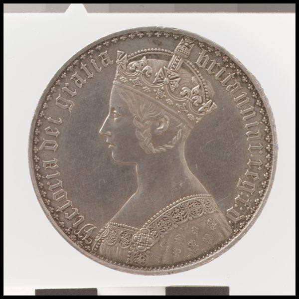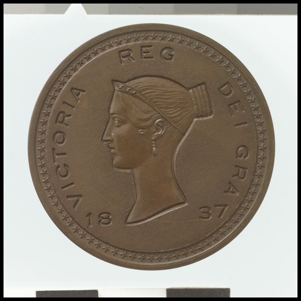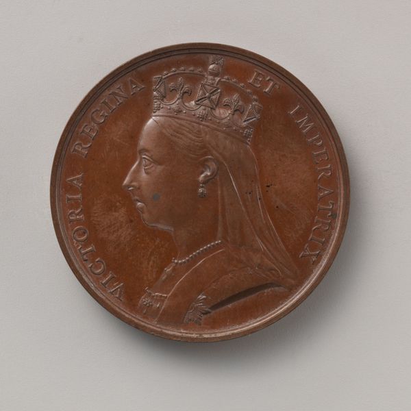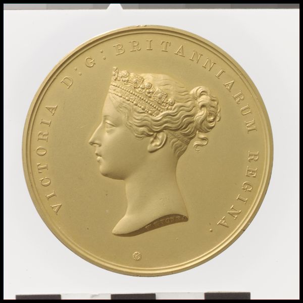 This is a gold medal of Queen Victoria, made by Leonard Charles Wyon in England. It depicts Victoria in profile, wearing a crown and veil, and is inscribed with the words "Victoria Regina et Imperatrix," meaning "Victoria, Queen and Empress." The medal reflects the social and political context of Victorian England. As Queen, Victoria was the head of state and a symbol of national identity. The medal, which was made during the height of the British Empire, served as a propaganda tool, promoting the image of Victoria as a powerful and benevolent ruler. It’s important to remember that this image was carefully constructed and disseminated through official channels. To truly understand the medal, we need to consider the social conditions that shaped its production. Looking at the history of the British Empire, the role of the monarchy, and the development of visual culture in the Victorian era allows us to understand the medal as a product of its time.