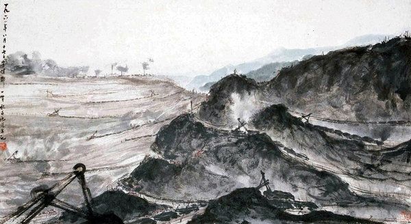Editor: Here we have William Louis Sonntag's "Landscape with Rocky Hills and Stream," painted in 1890. The monochromatic palette really evokes a feeling of quiet desolation. How do you interpret this work? Curator: The lack of color indeed emphasizes a feeling, perhaps even a cultural memory, of loss or winter's isolation. The rocky hills themselves become symbols. Do you notice how the stream mirrors, almost doubles, the sky? It is a conventional artistic method of creating symbols. Editor: I see what you mean. It’s like the earth and sky are one and the same. It's really immersive in this regard! Is there anything symbolic about the broken trees over the water? Curator: They suggest fragility and transience. Water often embodies change and flow, so, pairing that with broken trees? They amplify the temporary nature of things, reminding us of the cyclical patterns of decay and renewal inherent in nature. What feeling do those symbols evoke? Editor: Maybe acceptance, even peace? Though there's a harshness too, I think it's fascinating how these symbols, without a soul in sight, capture a wider sense of solitude. Curator: Precisely! That interplay between nature's power and humanity’s fleeting existence is a potent theme carried throughout visual imagery. Landscapes, through centuries, allow civilizations to remember a relationship with an environment, either natural or artificial. They give symbols meaning that time and tradition perpetuate. Editor: That’s so true, the symbolic power feels so alive and palpable. It’s like the landscape carries all these complex stories and emotions. Curator: And, ultimately, Sonntag’s brush captures that emotional and psychological weight. Landscapes are more than scenes, aren't they? Editor: Absolutely, it gives a powerful, thoughtful impression that makes you ponder the greater environment!