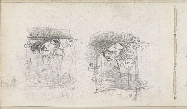 This graphite drawing shows a double wooden door with a decorative pattern, sketched by Maria Vos. The composition immediately draws our eye to the intricate details of the door and its surrounding architecture. The textures, skillfully rendered through delicate lines, offer a tactile sense of the rough stonework and aged wood. Vos's sketch plays with semiotic codes of architecture, hinting at themes of enclosure and access. The door, slightly ajar, suggests an invitation or perhaps a concealed secret. This threshold exists not only as a physical structure but also as a symbol, inviting us to contemplate what lies beyond the depicted facade. Notice how Vos uses shading and line to create depth, thus challenging the fixed meanings we might assign to such a familiar object. What begins as a sketch of a door becomes a profound meditation on history, perception, and the stories embedded within the material world.