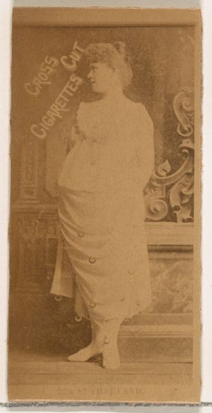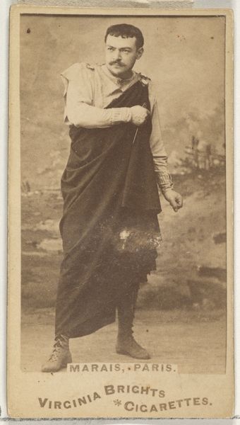 This is Juan Laurent’s photographic reproduction of Velázquez's painting of Menippus. The print, rendered in shades of brown, captures the essence of Velázquez's portrait. The composition is structured around the figure of Menippus, cloaked in dark fabric, set against a neutral backdrop. Laurent uses light and shadow to define form, emphasizing the texture of the philosopher's beard and the folds of his garments. The eye is drawn to Menippus’s gaze, which engages directly with the viewer. The items at his feet and his hands, crossed at the chest, create a sense of depth. As a reproduction, this work engages with questions of authenticity and representation. It invites us to consider how photography can mediate our understanding of painting, altering our perception of texture, color, and scale. The photograph creates an opportunity for reinterpretation, prompting new cultural and philosophical discourses around classical art.