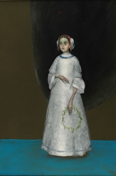 This is Stefan Caltia's painting, "The Night of the Water Searcher." Caltia, born in Romania in 1942, creates a dreamlike image that resonates with the socio-political atmosphere of the time. This picture isn't just a pretty scene. It hints at the unease and uncertainty experienced under the communist regime in Romania. Notice the lone figure, standing on a tiny island in the water. What are they searching for in the dead of night? The moon, a symbol of hope, offers little illumination. The odd triangular object on a platter suggests the absurdity of the times. Is this a criticism of the institutions that claim to guide society? Perhaps the artist is critiquing the political climate. To truly understand this image, we can look at the history of Romanian art and political events during the 20th century. Art history helps us understand how art reflects social context.