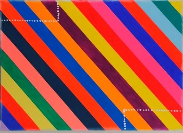 Gerwald Rockenschaub created 'Billboard 01' using simple geometric forms and bold colors. Born in 1952, Rockenschaub's work emerged within a cultural landscape grappling with the legacies of modernism and the rise of postmodern thought. Rockenschaub’s engagement with the visual language of advertising and corporate design encourages us to reflect on the pervasive influence of consumer culture on our collective consciousness. What happens when we find this visual language in art? The billboard’s composition, reminiscent of early computer graphics, nods to the increasing presence of technology in everyday life. The flat, unmodulated colors evoke the aesthetics of mass production, and the simplicity of form seems oddly impersonal. As you stand here, consider how this artwork reflects the shifting terrain of identity in an era dominated by mass media and digital interfaces. It asks us to think about the line between art and commerce, and the ways in which both shape our understanding of who we are.