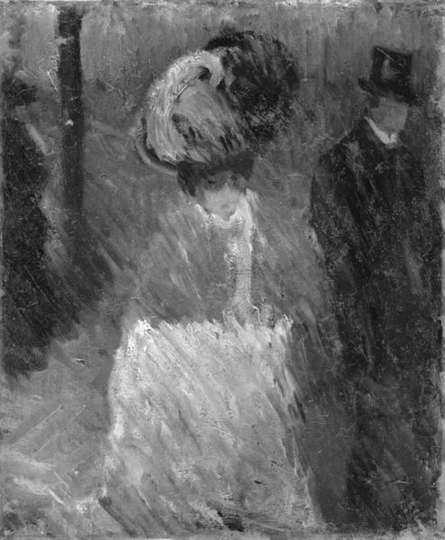 Curator: Johann Christian Klengel, a relatively obscure artist of the late 18th century, rendered this drawing titled "Ung dame og herre der konverserer gennem et vindue" around 1783. The materials appear to be a combination of pen and charcoal. Editor: It's striking, isn't it? There's a wistful quality to it. The starkness of the black and white, the rather scratchy texture…it evokes a sense of yearning or perhaps even constraint. Curator: Note how the figures are framed, almost imprisoned, by the architectural elements. Klengel uses dense, interwoven lines to create volume and shadow. This recalls, for me, some of the principles inherent within Romanticism—the subjective emotionality, the attention to intimacy. Editor: Precisely. Windows and doors often function as metaphors within art history—thresholds between public and private worlds. These individuals are clearly separated, yet attempting connection. Given the time period, the window likely serves to heighten commentary around restricted interactions between genders, reflecting social mores, gendered restrictions, and perhaps illicit desire of the era. The woman is indoors, closeted; the man positioned at the margins. Curator: An interesting interpretation, although it seems an approach primarily informed by sociological consideration. I would suggest focusing primarily on the line work. Consider the contrast in the rendering of the figures' clothing—a swirling mass versus defined structure. Editor: The use of line is indeed crucial; however, consider the power dynamics visualized here. This piece speaks of social structures and the inherent inequalities that shaped human interactions. What does this piece express about power and surveillance? What gazes might come to bear? These, too, are valuable lines to trace. Curator: And certainly relevant areas to contemplate. A true strength in this sketch. Its inherent ambiguity allows multiple readings which contribute to an ongoing dialogue regarding artistic interpretation. Editor: Indeed, that openness invites contemporary viewers into that historical moment and helps us reconsider present implications too. The piece reminds us that such dialogues and restrictions, while perhaps reframed, still persist.