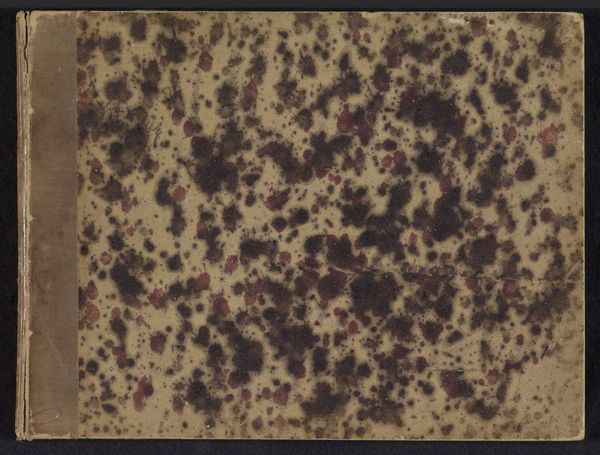 Curator: Alright, let's delve into this interesting piece from the Rijksmuseum, a sketchbook titled "Schetsboek XXII met 30 bladen," created by Isaac Israels between 1875 and 1934. It’s a mixed-media work on paper. Editor: Okay, first impression? It's like looking into the night sky through a blurry lens. Or maybe a decaying galaxy. It has that mysterious, almost melancholy vibe, wouldn’t you agree? The colors seem very aged. Curator: Absolutely. The sketchbook, as an object, carries its own story of age and use. The mottled pattern, like organic texture—maybe marbled paper?—visually echoes that. The violet and black interplay evokes depth and the sense of peering into something unknown, hinting at the cultural fascination with texture and layered experience in impressionist-era artistic interpretation. Editor: Layered is a great way to put it! You get a sense of countless thoughts, sketches, dreams trapped inside. It’s as if the cover itself is trying to express the creative chaos contained within. What do you think about the contrast between the vivid purple and the more muted textures near the spine? Curator: That contrast emphasizes the dual nature of memory itself. Vivid recollections punctuated by blurred or faded details. Also, notice how the surface texture invites a tactile response, almost urging one to touch and explore its materiality. The marbling can evoke both the natural and the artificial, and is loaded with associations spanning many historical periods. Editor: You're right. It makes me think of those old school notebooks, the ones you'd cover in stickers and doodles. This one's more sophisticated but retains that intimate, personal feeling. I find myself wondering what secrets that cover is hiding, like a miniature, enigmatic portal. Curator: And there, in the wonder of unknowable contents and historical use, lies the object's continued power to resonate across eras. Editor: Well, I'm certainly more intrigued than when we started. Time to unearth a real sketchbook of my own, perhaps. Curator: Indeed, perhaps you will discover your next inspiration between those very pages.