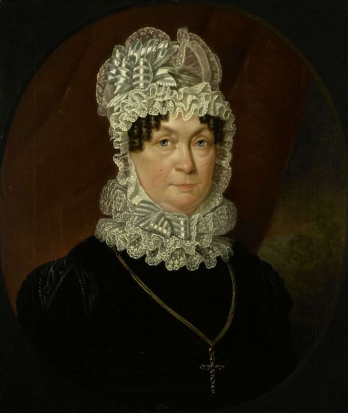 John Russell painted this portrait of an unknown lady, likely in the late 18th century. During this time, portraiture was not just about capturing a likeness, it was deeply entwined with social status and identity. Consider the elaborate lace adorning her dress and cap. Lace making was an industry often associated with women's labor, yet here it signifies luxury and the sitter’s elevated position in society. The gaze is serene and self-assured, typical of the era’s aristocratic portraiture, but it also reflects a sense of the individual. While Russell’s artistic skill is evident in the delicate rendering of fabric and skin, this portrait prompts us to think about the unspoken narratives. What were this woman’s experiences, her ambitions, her place in a world that often confined women to specific roles? This portrait invites us to reflect on the complexities of identity, and the ways in which appearances both reveal and conceal.