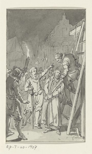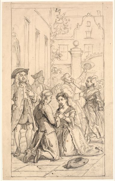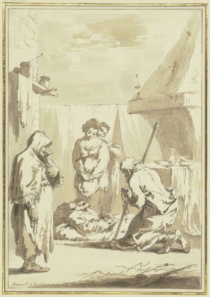 This drawing of ‘Harlequin Presenting a Peepshow’ was created by Jan Goeree, likely in the early 18th century. Executed in pen and brown ink, with a nuanced wash, the drawing orchestrates a lively street scene around a central spectacle. Notice how the composition draws us in through contrasting textures and tones: from the rough bark of the tree and the harlequin’s patterned suit to the smooth surfaces of the buildings. Goeree masterfully uses line and wash to define shapes, creating depth and atmosphere that animate the scene. The harlequin’s dramatic pose and the boy’s peering face invite us to consider how we engage with spectacle and illusion. The use of light and shadow, coupled with the dynamic arrangement of figures, emphasizes the theatrical nature of the event. This element disrupts the ordinary and prompts viewers to question the boundary between reality and performance, inviting us to reflect on the complex interplay between observation, illusion and interpretation.