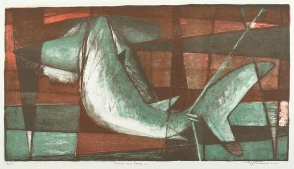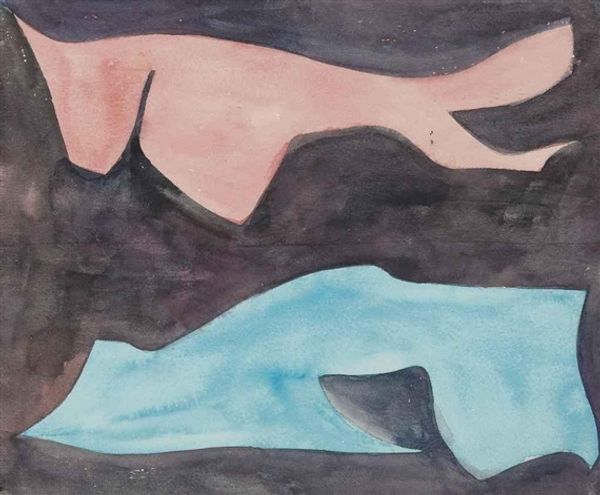 Corneille made this work, *Woman and Bird*, using watercolor and pencil. The loose application of color and simplified form give the artwork a feeling of immediacy. You see the inherent qualities of the medium, the watery pigment soaking into the paper. The texture and form of the paper support the work, while the artist’s hand becomes clearly visible through the pencil lines. There is a deliberate contrast between the fine lines of the pencil drawing and the soft application of watercolor paint, which brings a sense of motion to the landscape around the figures. Corneille employed these relatively accessible and affordable materials, with their inherent portability, to create work quickly, perhaps even en plein air. The artist's labor and artistic choices in the production process emphasizes the importance of materiality, challenging traditional distinctions between fine art and craft.