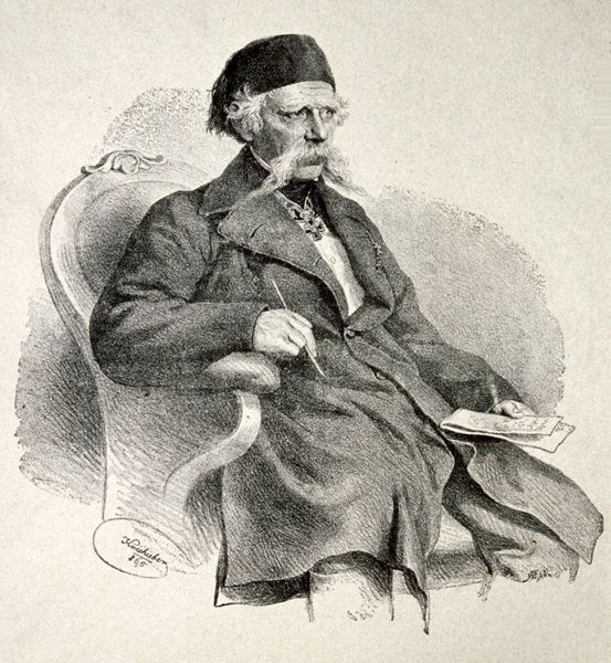 This lithograph depicts Ludwig Gabillon, a prominent actor and theatre director of the Burgtheater, and was made by Josef Kriehuber in 1860. This image offers insight into the cultural significance of theatre and its stars in 19th-century Vienna. The Burgtheater, closely associated with the Habsburg monarchy, was not merely a place of entertainment but a cultural institution that reflected and shaped Viennese society. Kriehuber’s portrait captures Gabillon in a manner befitting his status, emphasizing his respectability and artistic standing. The formal attire, complete with an honorific medal, situates Gabillon within the established social hierarchy. Understanding the cultural and institutional context of this lithograph requires attention to the history of the Burgtheater, the role of patronage in the arts, and the social function of portraiture. It's through such research that we come to understand the intricate connections between art, power, and society.
