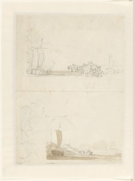 Editor: Here we have "Miniature Crock" by Janet Riza, made around 1937. It's watercolor and drawing on paper, and it strikes me as both delicate and a little… strange, almost like looking at an artifact. What do you see in this piece? Curator: The object, though simple, reminds us that even humble vessels can be carriers of symbolic meaning. The floral motif repeats on the surface—but they almost become abstracted, a language perhaps, that links us back to earlier traditions of folk pottery and storytelling. What stories do you think these shapes and colors whisper to us? Editor: Stories? Well, the blue on a grey-ish base seems quite classic. Is this drawing an interpretation of an older piece or design? Curator: Possibly. Blue decorations on earthenware certainly echo centuries of ceramic tradition. I see an interesting duality here: it looks practical and utilitarian. And yet, in rendering it as an art piece, the artist asks us to reflect on utility itself. Does functionality enhance an object’s beauty, or the other way around? How do these abstracted elements make you feel? Editor: I hadn't considered it that way. They create a kind of rhythm around the pot, I suppose, that draws the eye. So, beyond mere depiction, it is trying to convey…? Curator: Consider the object's "personality," so to speak. The vessel is not merely drawn but seemingly imbued with a silent history and its own visual vocabulary. We sense not just the object, but the cultural memory attached. The pot may invite speculation about past craft practices, suggesting that the artist preserves tradition by capturing the symbolic power and timeless human impulse to create and decorate functional forms. Editor: This definitely adds another layer of appreciation for what seems like a simple watercolor! Curator: Precisely. And remember, every stroke is potentially symbolic, waiting for our attentive reading.