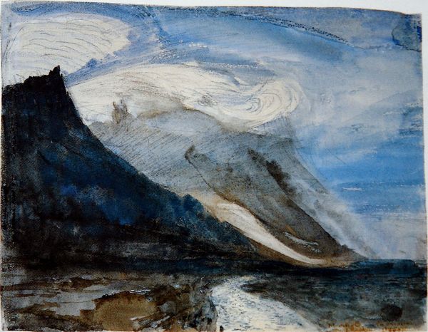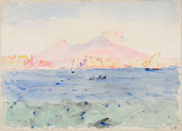 Joseph Mallord William Turner created "Genoa From The Sea" using watercolor and graphite, presenting a vista that dissolves into atmospheric haze. The composition is dominated by the subtle gradations of color, where the cool blues of the sea blend into the warm grays and yellows of the sky and distant land. The brushwork is loose and suggestive, capturing the ephemeral qualities of light and atmosphere rather than precise details. Turner’s handling of the medium reflects a shift towards prioritizing subjective experience over objective representation. Notice how the structural clarity of traditional landscape painting is destabilized by the emphasis on tonal values and atmospheric effects. The semiotic effect of the hazy light and indistinct forms is a sense of awe and sublime experience. The effect of the almost monochromatic washes challenges our perception and fixed ideas about the natural world, inviting contemplation on the transient nature of reality.