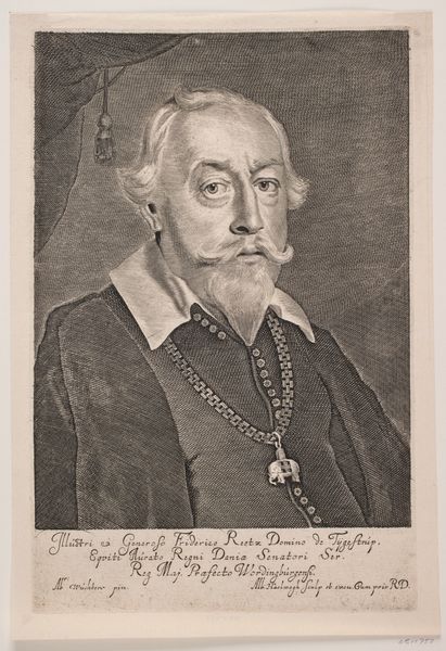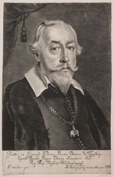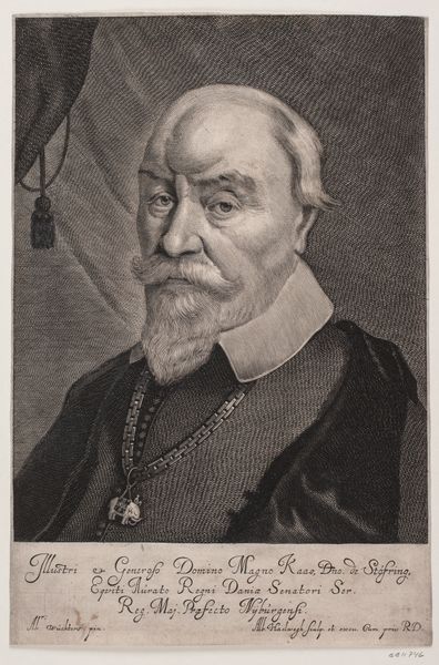 This is Albert Haelwegh's portrait of Mogens Kaas, an engraving made sometime in the 17th century. The image presents us with a rather imposing figure, and was intended to project power. Kaas's status as a senator is encoded in the chain of office with its elephant pendant, his stern gaze, and the trappings of wealth conveyed by the draped curtain in the background. Made in Denmark during a period of shifting political alliances and military conflicts, this image would have been used to reinforce Kaas's authority as a representative of the Danish crown. The inscription below the image identifies him as a high-ranking official and landowner. The image speaks to the importance of portraiture in solidifying the power of individuals within the Danish state. A historian can better understand the dynamics of 17th-century Denmark by analyzing images such as these along with archival documents. The visual and textual sources are invaluable for understanding this period.