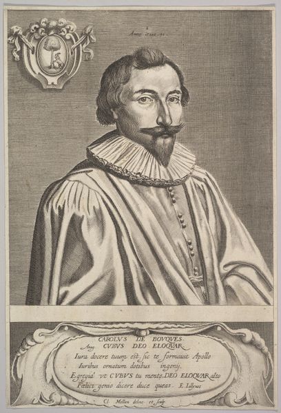 Editor: Here we have a portrait engraving of François Gysels, made by David Bailly. It's so detailed and ornate. He looks important. What can you tell me about this piece? Curator: This portrait encapsulates a crucial shift in artistic representation. Gysels' confident gaze speaks volumes, but it’s also essential to consider *who* was deemed worthy of such commemoration during this period. How might gender, class, or even guild membership play into this depiction? Editor: That’s interesting. I hadn't considered how unusual or common it would be to see someone in a portrait back then. Is it about power dynamics, like who has the power to be remembered? Curator: Exactly! The elaborate clothing, the artist's tools in the foreground - these aren’t accidental details. They construct a narrative of status, skill, and perhaps even the rising influence of artists within society. How might we read this portrait alongside other representations of artists during this era, especially considering issues of patronage and artistic agency? Editor: So it's not just a picture of a man; it’s about the social and economic context of artmaking at that time. Curator: Precisely! And the visual language they were using to communicate. Consider also the racial dynamics; who *isn't* in these portraits, and what does that silence reveal? It’s important to question those absences, right? Editor: I will. Thank you! I never thought a portrait could be so…political. Curator: Art always reflects and shapes our understanding of the world. I will look at art, even portraits, through a different lens from now on.