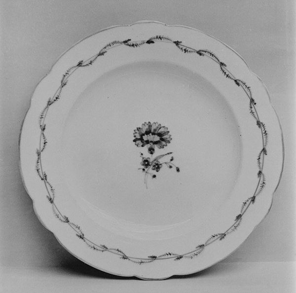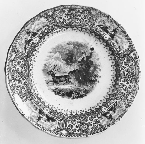 This plate was made by William Adams & Sons, and it resides in the Metropolitan Museum of Art. The monochromatic palette enhances the intricate details of the design, immediately drawing your eye. The center features a landscape scene, while the border is adorned with floral and scenic cartouches, creating a layered composition. Note how the artist creates a structured yet harmonious composition. The central image commands attention due to its placement, while the surrounding border adds depth and complexity. The detailed botanical and landscape motifs, framed within curvilinear cartouches, offer a sense of contained narratives, playing with notions of space and perspective within a limited surface area. This juxtaposition of central image and peripheral ornamentation raises questions about how we perceive and categorize visual information. Is it a structured, unified object or a collection of disparate, self-contained images?