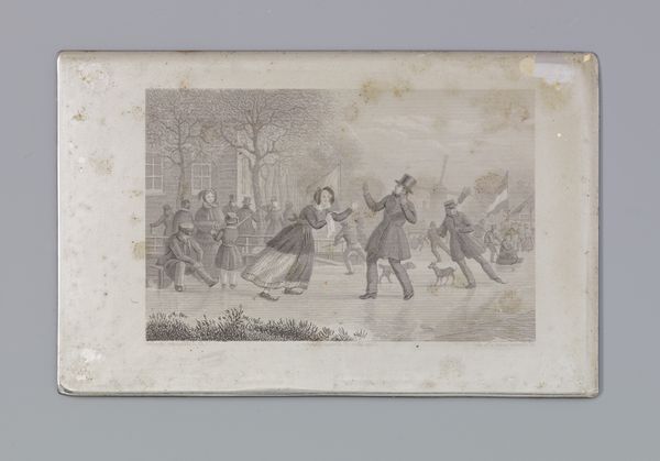 This print depicts a winter landscape filled with figures skating and enjoying themselves on a frozen pond, but its precise origins are unknown. The multilingual titles suggest a broad European audience. The image creates meaning through its depiction of social activity and leisure, referencing a specific cultural practice of winter recreation. The presence of people from various age groups could reflect a particular emphasis on the family unit, or perhaps highlight the importance of community bonds in a pre-industrial era. Without knowing the exact time and place it was made, it’s hard to definitively connect it to a specific historical event or movement. However, the image might be tied to the rise of leisure culture. By considering these factors, we can begin to understand the role this image played in shaping social attitudes and behaviors. Historians can analyze such images to understand how leisure was represented and consumed in different times and places.