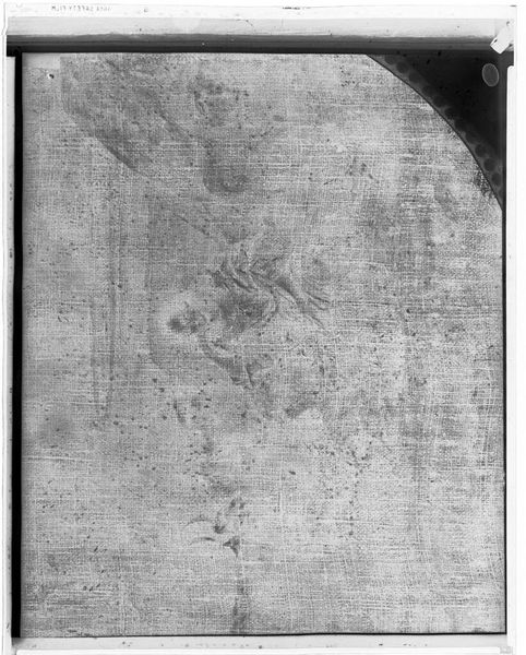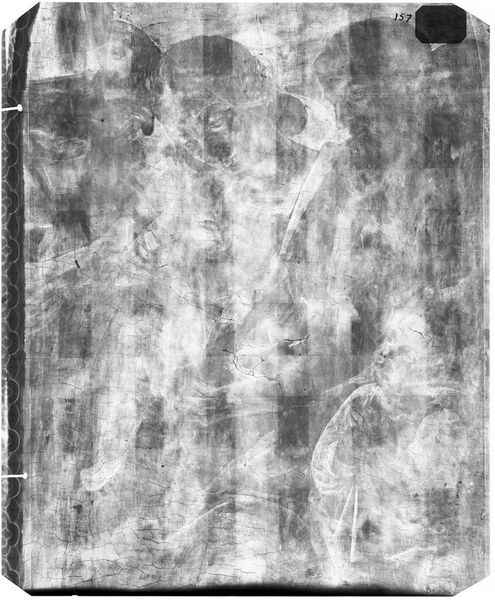 Curator: Here we have an X-radiograph of "Drunken Quarrel," originally by Andries Both, housed at the Harvard Art Museums. It’s an unusual glimpse beneath the surface, isn't it? Editor: Immediately I’m struck by the ghostly quality. It’s like seeing the skeletal remains of a composition, the bare bones of the artist’s intent laid bare. Curator: Indeed. X-rays reveal so much. For example, the symbolism once hidden is now exposed, perhaps layers of meaning the artist consciously or unconsciously embedded. Editor: It highlights the material density, or lack thereof. Look how certain areas absorb more radiation than others, revealing the build-up of pigment. Curator: Absolutely. Consider the cultural implications as well; this image is a cultural artifact that connects us to past times and attitudes about public disorder. Editor: And how the technology itself shapes our understanding. This radiograph wasn't possible until the late 19th century, forever changing how we perceive and study art. Curator: It opens our minds to new avenues of exploration. Editor: Absolutely, a fascinating peek behind the curtain, or in this case, the canvas.