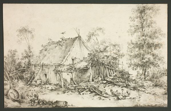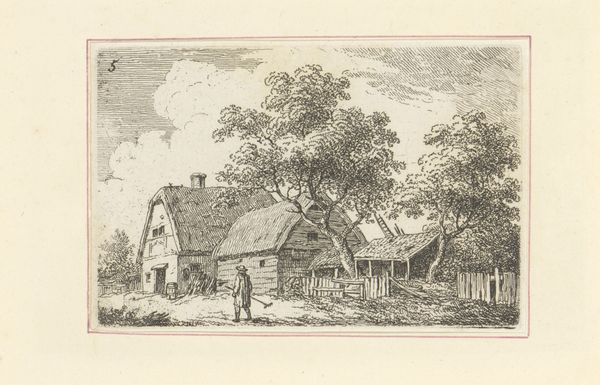 Anthonie Waterloo etched this artwork, titled "The Small Hamlet," sometime in the 17th century. At first glance, the thatched roofs dominate the scene, evoking a sense of shelter and simplicity deeply rooted in human history. These structures are not merely buildings; they are symbols of home and community. We can see the symbolic return of the ‘primitive hut’ motif in architecture. From ancient agrarian societies to modern eco-villages, this archetype reflects a primal longing for harmony with nature and a retreat from the complexities of urban life. The thatched roof, appearing across cultures, serves as a potent reminder of our shared ancestral past and a yearning for simpler times. Consider how this basic human need has evolved, yet still resonates within our collective memory, resurfacing in various forms throughout time. The emotional and psychological impact of the image lies in its ability to tap into this deep-seated longing, engaging viewers on a subconscious level and creating a timeless connection to our shared human experience.