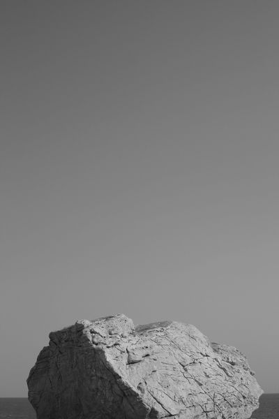 Curator: This striking photograph, simply titled "mountain," was taken by Chaokun Wang in 2017. Its stark monochrome palette really captures the viewer's attention. Editor: Immediately, I'm struck by how isolated it feels. The mountain, rendered in sharp detail, dominates the lower half, while the vast black expanse above feels almost ominous. It’s minimalist yet powerful. Curator: Indeed. The geometric precision of the mountain against the void emphasizes its grandeur. It is also rooted in a history of representing sublime landscapes and power, with the mountain as both a geographical reality and cultural construct, reminding us of the environmental questions about glacial melting. Editor: And thinking about this through a feminist lens, it almost subverts traditional mountain imagery. There's an absence of the typical triumphant mountaineer, foregrounding the vulnerability of nature itself in a climate-anxious age, without being explicit about the source of the ecological disruption. Curator: Exactly, the absence of human presence makes the image so striking, allowing viewers to meditate on a more profound relationship between the human and non-human worlds. Editor: The high contrast exacerbates the power dynamics too, emphasizing the imposing structure of the mountain against a dark, empty background; its imposing nature can trigger thoughts around geopolitical hierarchies. The black and white allows for little nuances to the interpretation. Curator: The photograph definitely speaks to the artist’s sensitivity to form and their technical skill in capturing such a nuanced rendering of light and shadow on snow and rock. This photographic piece serves as both aesthetic achievement and sociopolitical observation. Editor: For me, this picture lingers in the mind as a sombre monument and quiet premonition, asking crucial questions about identity, existence, and environmental impact, especially when divorced from context. Curator: Well, looking at it from a traditional historic angle, Wang has given us much to think about beyond first glance. Editor: Agreed; it’s that quiet power that makes it stick with you, prompting a much larger dialogue about landscape photography as social practice.
