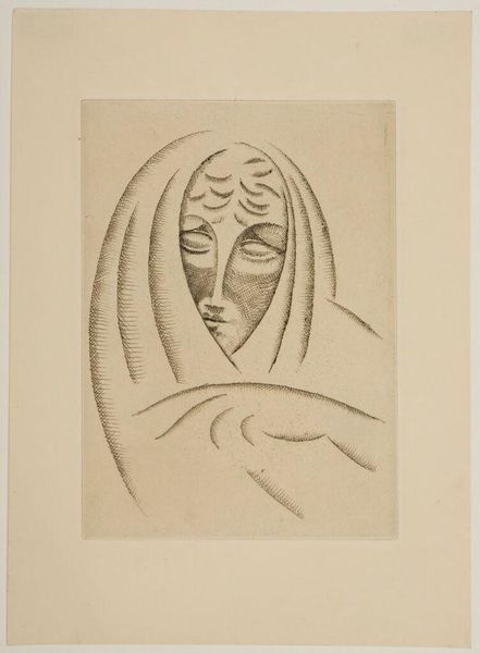 Editor: Here we have "Head of a Woman," a pencil drawing by Lodewijk Schelfhout, dating back to 1928. There's something so serene about this portrait. It almost feels like a sketch of a nun, or someone in quiet contemplation. What do you see in this piece? Curator: Serene is a beautiful word for it. When I look, I don't just *see* the pencil strokes; I feel the artist’s hand almost searching for the soul of the sitter. It's a wonderful study in light and shadow, wouldn’t you agree? Like Schelfhout is using shading to sculpt her very presence on the page. It whispers of interwar anxieties, yet offers a stillness, an inner peace that many craved. Do you pick that up at all? Editor: I can see that. The downward gaze certainly gives that sense of…inner peace. But also, maybe a touch of sadness? Curator: Precisely! And that's the magic, isn't it? Art isn't about providing answers; it’s about sparking dialogues within ourselves. Schelfhout leaves room for interpretation, for our own experiences to color the narrative. I like to think about what story she's holding within. Editor: That makes me appreciate the simplicity of the medium. Pencil on paper, yet it holds so much depth. Curator: Yes, it proves you don't need grandeur to convey profound emotion. Thank you for making me pause and re-consider the gentle nuances of this piece. I see it anew now. Editor: And I now feel better equipped to look for the artist's soul, in other works.