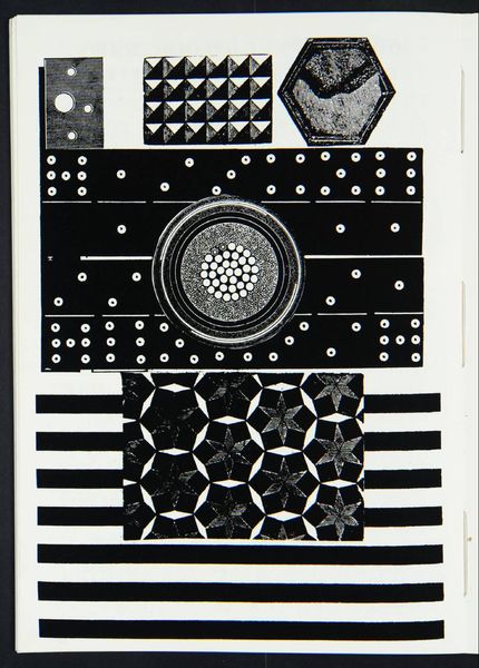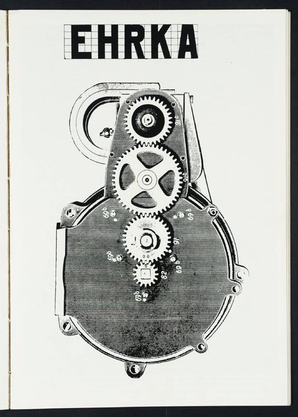 Curator: Here we have an untitled work by Sir Eduardo Paolozzi, currently residing in the Tate Collections. It presents a fascinating study in geometric forms. Editor: My first impression is one of precision, almost cold calculation. The patterns are mesmerizing, but also slightly unsettling. Curator: Indeed. The upper portion recalls patterns of light refraction or perhaps sonic waves, a kind of technological mandala. The object below is a mechanical element that one might encounter in a machine. Editor: Yes, and the contrast is stark. The smooth, flowing lines above meet the rigid, angular forms below. It's like a dream colliding with a blueprint. I think Paolozzi offers a vision that merges technology with something almost spiritual. Curator: Precisely. It makes you ponder the impact of technology on our perception of reality. Editor: It does leave you wondering where the mechanical ends and the sacred begins.