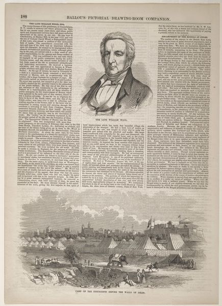Editor: This is "Presidents Buchanan and Lincoln Entering the Senate Chamber Before the Inauguration," a wood engraving by Winslow Homer from 1861. It's incredibly detailed, and the contrast between the figures and the ship above them creates a really somber mood, given the historical context. How would you approach interpreting a piece like this? Curator: Note how Homer structures the composition. He juxtaposes the intricate rendering of the political figures with that of the ship. The lower register shows the dark hatching in the figure’s formal attire. Above them, the sharply delineated sailing vessel fills the majority of the frame. It creates an oppositional relationship. Is it symbolic of the tempestuous future of the US at the beginning of the civil war? Editor: I hadn't considered the balance that way. Is it significant that the detail is equally considered throughout? Curator: Precisely! Observe how Homer applies varying densities of marks to create texture and depth throughout the composition. Look at the subtle gradations in tone on the ship’s sails. And look again at Lincoln’s stark coat compared with that of the figures standing near him. Every figure, like the ship, is meticulously observed. Editor: So the wood engraving technique itself, with its reliance on line and contrast, contributes to the artwork's meaning? The ship’s lines, those coats...they appear resolute. Curator: Indeed. Homer uses the intrinsic qualities of the medium, the starkness achievable through the cut of the block, to amplify the historical gravity. It’s not just a portrait; it’s a visual encoding of tension and the anticipation of change. Editor: That's a really helpful way to understand the relationship between form and content. I was so focused on the symbolism. Curator: Focusing on how an artist manipulates the elements to convey their ideas can be a portal. Editor: Thank you, this gives me a new approach to understanding historical prints.